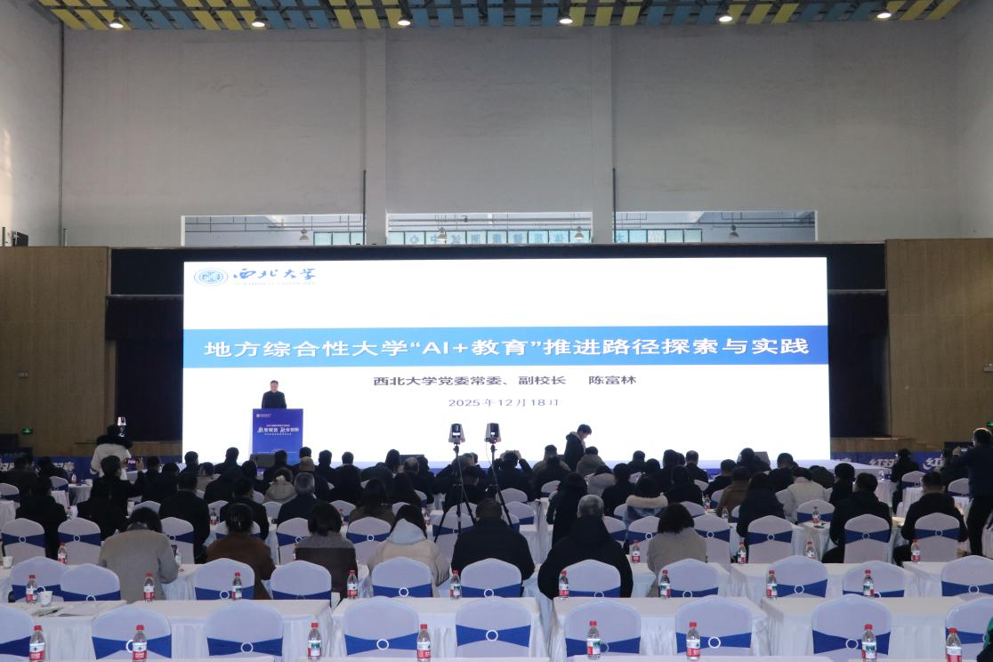 12月18日,2025年陕西数字教育工作推进会召开,会议设置基础教育、职业教育、高等教育三大平行会议。我校党委常委、副校长陈富林代表学校在“AI与数据融合驱动的高等教育教学变革”平行会议以“地方综合大学‘AI+教育’推进路径探索与实践”为题做了经验分享,来自全省高等学校的60所学校领导和信息部门、教务部门负责人参加了会议,省教育厅高教处副处长杨鹏主持会议。